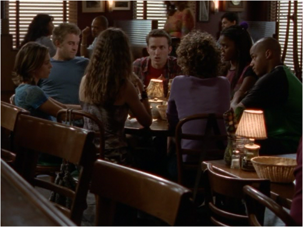 One other thing I did notice in the second episode is that both Noel and Felicity are wearing Tommy Hilfiger clothes – I love Felicity’s Tommy coat – and I wonder if this is a one episode thing or if there was a deal between the WB and this clothing line. It would make sense for the latter especially as at this time they had recently did a tie-in with The Faculty (I love this movie) and the commercial is pretty funny now.