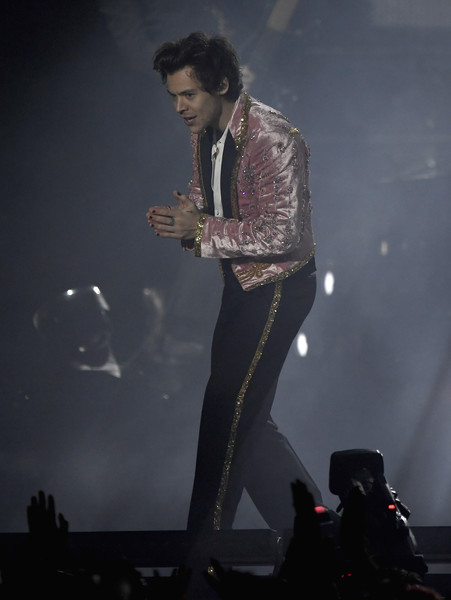 Let’s take a moment to see what Harry Styles is wearing on tour. You guessed it; another Gucci stunner. And it’s pink and sparkly! Very on trend.
