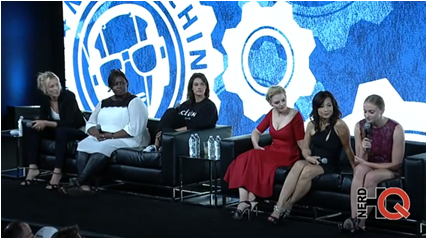 At Naeem Khan the front row is all intricate pattern and bold designs much like the intricate beading and color on display on the runway. All decked out in Naeem Khan are Jamie Chung (she has been a heavy presence this week and she’s the only person to feature on both ‘Best of’ lists), Jenna Dewan-Tatum, Yvonne Strahovski, Connie Britton, and Padma Lakshmi. I am especially drawn to Strahovski’s stunning blue and yellow kaleidoscope-print frock and of course Connie Britton in general.