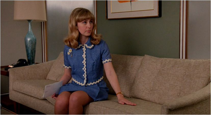 Mad Men 7.09 MeganFor her meeting with Harry, Megan dresses up in her “Welcome to LA” blue baby doll number prompting Harry to call her every man’s fantasy and that she looks like Ali MacGraw and Bridget Bardot had a baby. Harry does what Harry does and is the worst by hitting on her and then running to Don to call Megan crazy. Megan is incredibly fashion forward so it is strange to see her wearing something from a year ago, but it is obviously a look she feels confident in despite her lack of good acting fortune recently.