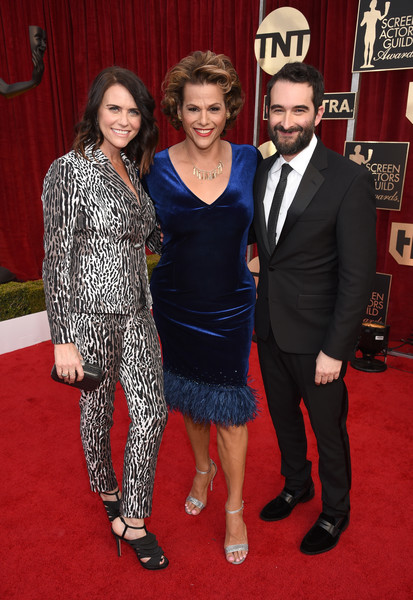 Rounding up the first part of this SAG rundown with the GLOW cast showing off a variety of styles; so much color and pattern. I cannot wait for season 2.
