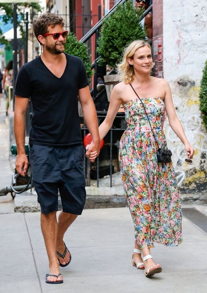Swapping the red carpet for a pair who is the epitome of cool summer in the city chic with Joshua Jackson and Diane Kruger. Kruger is a sartorial queen both in couture and regular day wear like this floral strapless dress and sandals. Jackson’s rocking a not too deep-V, the perfect amount of beardy goodness and classic red Ray-Ban wayfarers.