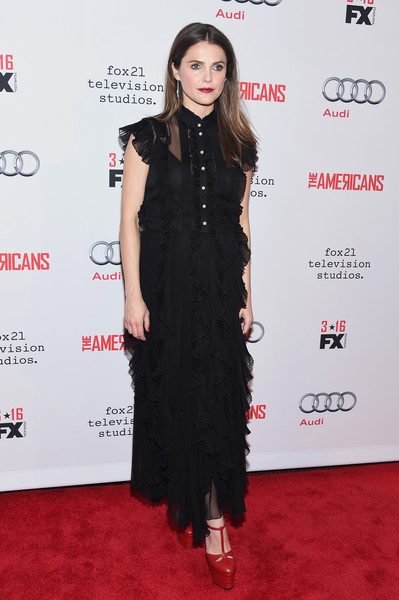 What better way to dress up a shirt than with a collar pin. Paige is crushing the style stakes this season, even as she finds out about the very bad things that happened to the Soviet Union during WWII.
