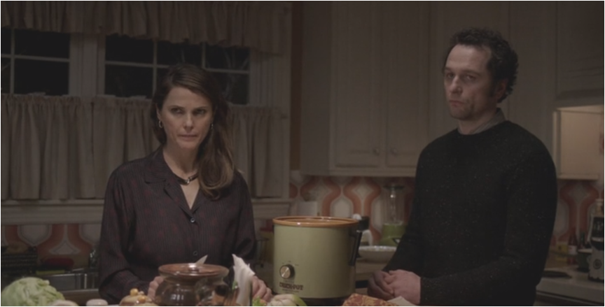 Elizabeth and Claudia’s Russian history lesson for Paige this week centers on the Great Patriotic War aka WWII; they underscore just how much the Soviet Union lost in comparison to the U.S. (400,000 to 27 million), the battle that changed everything (Stalingrad, not D-Day) and the poverty that followed (Elizabeth mentions eating rats). The history book erasure is a valid point. They suffered, they died, they won. But this doesn’t justify what Elizabeth has been doing this season. How every operation and episode has added to the body count. Each death has come as a result of operations not going to plan; Elizabeth attempts her “got a light?” (how very Twin Peaks) tactic again, this time she is interrupted.
