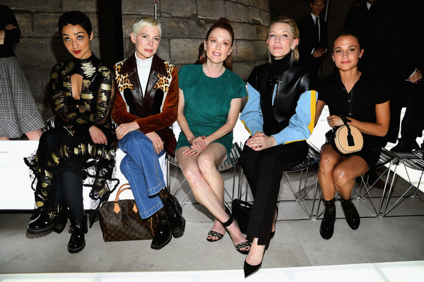 Color blocked Calvin Klein is just the thing—even if it errs on the side of too sheer—and Julia Garner’s got an excellent blue bag to match. Top marks for the bold lipstick too.