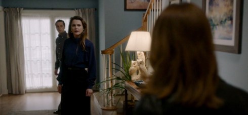There is a fluidity in the way the camera moves, whether it is capturing Elizabeth’s daring Gennadi plot, moving from hiding place to hiding place or the closest The Americans has come to a walk and talk scene. Instead it is walk and argue starting with Paige essentially yelling “You’re not the boss of me” at her mother in the garage, then Philip and Elizabeth carrying on this heated discussion moving from the kitchen, to the stairs and then the bedroom.