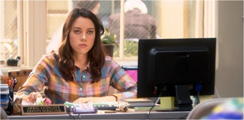 Not everything in Pawnee goes the right way for these characters as Andy remains the optimist with his Bert Macklin persona, but without the police officer role that he wanted so much this year. Is Andy the only one who isn’t better off when it comes to career? Even if he didn’t get his dream job Andy does still have April and he’s more intuitive than his goofy disposition suggests. On a completely different note and it won’t be a huge surprise for anyone who reads this blog, but I also really want April’s shirt in the photo below.