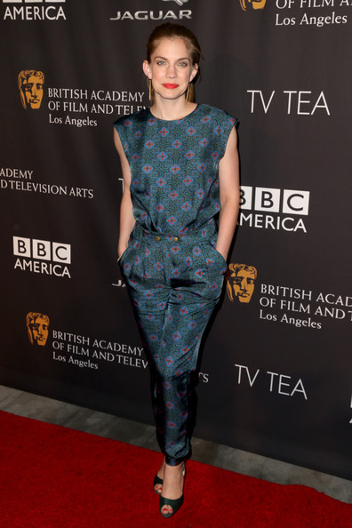 Great dress and I’m so happy Bledel’s shoe/manicure choice is summer when her dress is winter. Got to mix those seasons.yvonne-strahovskiSometimes a black jumpsuit does the trick as Yvonne Strahovski demonstrates.tara-lynne-barrTara Lynne Barr is here to remind me that I still need to finish watching the last season of Casual and also that red boots are fabulous. Another good example of an outfit I would actually wear.ari-graynorAs with Yvonne Strahovski’s black jumpsuit, Ari Graynor goes classic in a black sweater and pencil skirt (further research on Twitter revealed this wasn’t a sweater dress like I hoped it might be) as she talks “I’m Dying Up Here.”conor-leslieConor Leslie of new Fox show Shots Fired delivers on winter botanicals and this dress skirts the right side of sheer (yeah there is one), but really it is her lipstick that is giving me so much life right now. leighton-meester-tcaMuch to my joy Leighton Meester is returning to TV in March for Fox’s time travel comedy Making History and in jumpsuit news I am enjoying the turtleneck twist combined with the gold studs; this feels very business but you can also go to the club after.