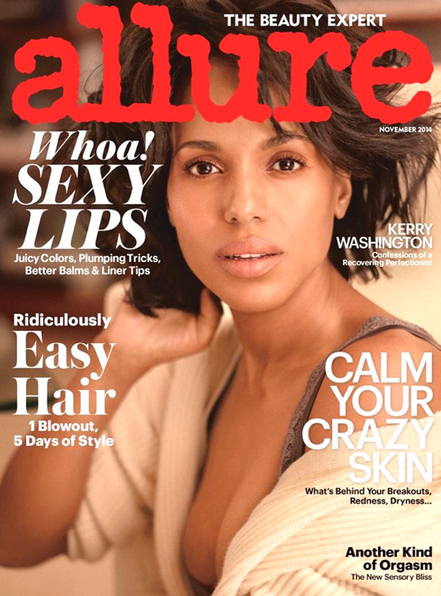 Kerry Washington AllureKerry Washington does the whole fresh faced look on the cover of Allure and it’s one of her best magazine covers to date (and over the past year there have been many). Wearing what looks like an Olivia Pope wine cardigan this is a far cry from her Scandal character with choppy, tousled and shorter locks plus a whole lot of cleav.
