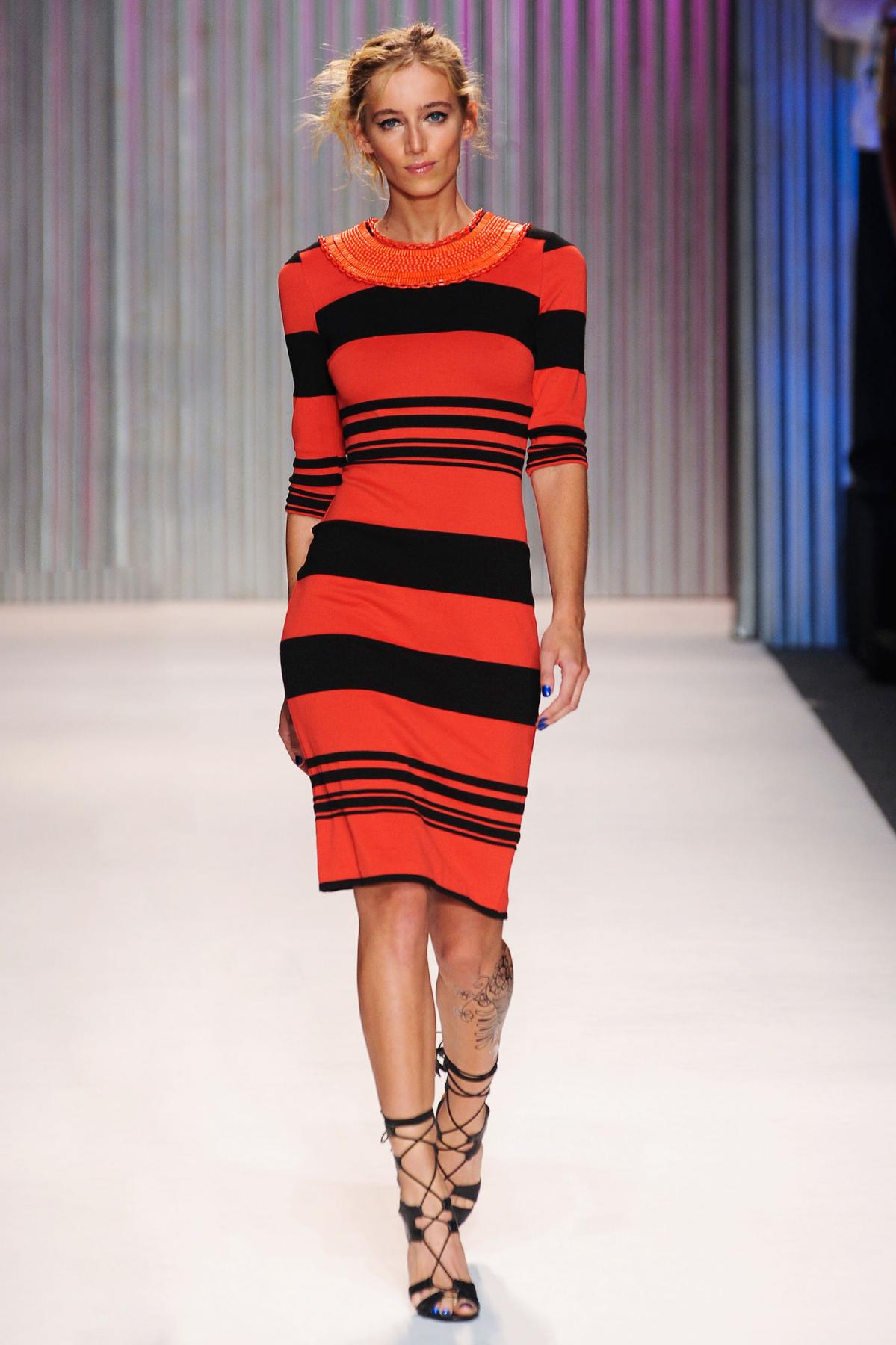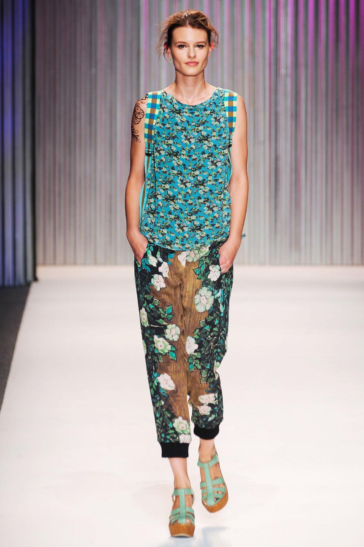 Back to Gina and the Coach runway show which includes a whole lot of floaty floral boho delights, leather minis, mosaic patterns and the all important knitwear.