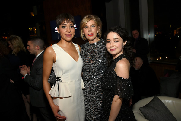 But there were a lot of sartorial highs including many embracing bold color after the weekend. Greta Gerwig goes full ethereal in Fendi, this might be my favorite thing she has worn so far during award season. Saoirse Ronan continues to impress with her red carpet styling because it is never the same thing. And when you’re attending this many events it would be really easy to get stuck in a sartorial rut. Here she pairs pretty in Michael Kors shimmer with a dark lip color, giving this outfit a rebellious edge.Continuing to pick up awards and looking great doing so is Sterling K. Brown. Ryan Michelle Bathe switches her tux for a frock, those silver pumps are a fabulous touch.Feeling a wave of calm as I look at Yara Shahidi in super ’70s patterned Giambattista Valli.On the scale of best florals, Erdem are high on the scale and Natalia Dyer shows just why. More killer florals from Niecy Nash to brighten up the blue carpet. Nash took to the stage with host Olivia Munn to toast (and roast) some of the recent Hollywood headline makers including Mark Wahlburg for his recent pay scandal. Because he didn’t already make enough money *insert every eye roll ever* A super fun Eloquii dress for Chrissy Metz; this might be my fave red (or blue) carpet look of hers so far. Also coveting the plaid coat she wore on the recent This is Us.Allison Janney looks like she is having the most fun while working the I, Tonya awards love and this cobalt blue Michael Cinco Swarovski studded gown is a striking choice. Octavia Spencer in another Tadashi Shoji winner. And we have also entered the official pleats section of this post.Emerald green plus red hair is a tried and tested combination, but it never gets boring. Especially when it is Jessica Chastain in Vionnet and there’s pleats.Gal Gadot has been a repeat fixture on TV Ate My Wardrobe of late in bold pink, blue and now metallic Prada. First came the colorful turtleneck/suit combo, then this amazing green jacket for Lil Rel Howery. Also crushing it in the colorful tux department is David Harbour. All the Sheriff Hopper feelings. I know Joel is the worst on The Marvelous Mrs. Maisel, but I find Michael Zegen super charming in everything else so I can’t help but want him to not be a dick in this show. Eggplant looks good on him. Yvonne Strahovski has just returned from the ’80s in polka dot mini Ronald van der Kemp. I love it. Thrilled The Big Sick won Best Comedy. Real Emily V. Gordon crushes it in red and Big Sick Emily, Zoe Kazan wears a dreamy Valentino.This award show has brought out my inner magpie, Rachel Bloom’s mix sequin Christian Siriano frock is another jazzy delight. More shimmery wonders with Mary Steenburgen in Cédric Charlier. Ann Dowd won Best Supporting Actress for Handmaid’s Tale and also in my mind for The Leftovers. This award season has been full of glitzy looking gowns and this is another fantastic one. I like ending awards posts with the Big Little Lies women. This is no different. While I still have qualms about a second season (because I think the first is pretty much perfect), I am excited to get more of these kind of shots in the future.