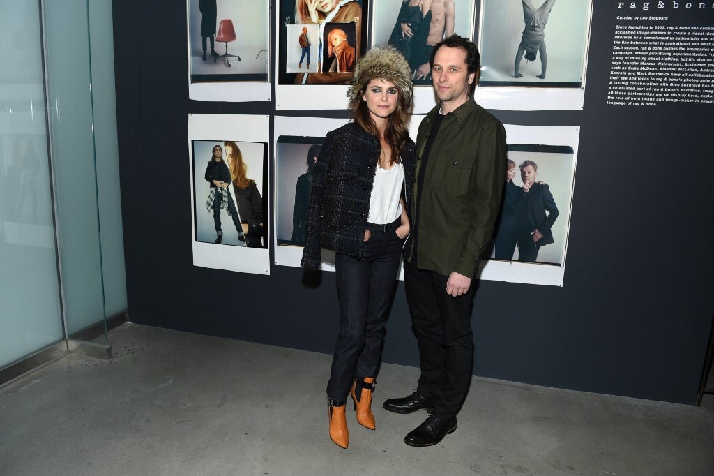 The rest of Russell’s outfit matches her casual cool vibe and I am very much feeling those boots. Walking in heels this high in the cold is something we have seen Russell do before, but it is probably a good thing that she had co-star and IRL boyfriend Matthew Rhys with her as this photo from the official Rag & Bone Instagram shows.