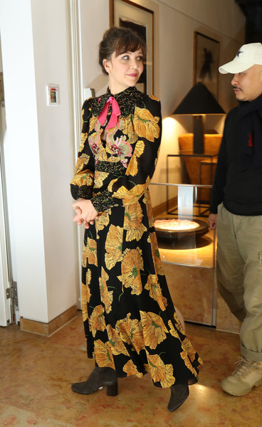 maggie-gyllenhaalMaggie Gyllenhaal is on the 2017 Berlin Film Festival jury and long sleeve florals paired with boots has been her go to style choice for both photo calls; it is really working for her. The pink bow is a cute touch here and this is very much in her cool, hippy mom wheelhouse.julia-jentsch-and-maggie-gyllenhaalAt the press conference this leans more ’90s and I love it. German actress Julia Jentsch paired a blue sweater with the most fabulous pants complete with colorful piping and silver pumps. I am looking forward to seeing more from both these ladies.