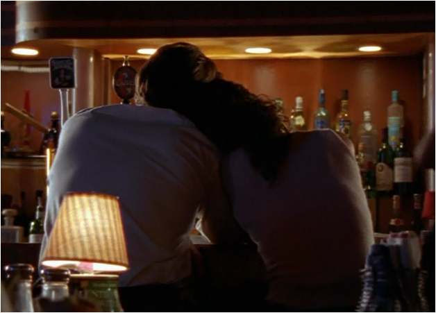 TV first kisses between will they/won’t they couples are an important milestone and they nail this one. It is full of heat and it makes so much sense that it comes in the middle of this half kind of argument of ‘what the hell is going on between us?’ In true Lorelai fashion another one of her love interests threatens to ruin this early stage and we’ve seen it before with Christopher. Christopher always has a habit of showing up at the wrong time. This time it is Jason who is back to win Lorelai’s heart and while he is another to add to the great Lorelai boyfriends list – unlike Rory, Lorelai gets the interesting guys – he’s no Luke. Thankfully he needs to go to the bathroom and Luke takes this moment to ask what the hell is going on?