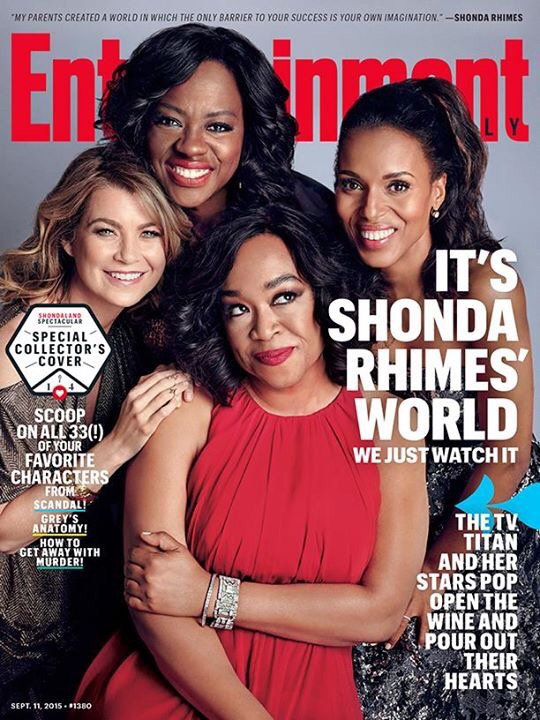 Anna ChlumskyAnna Chlumsky’s white ribbed dress is tennis watching simple chic and would look even better with a glass of Pimms and lemonade in hand (yes this is the US Open, but traditional Wimbledon drinks are where it is at).Fall TV is right around the corner and Thursday night television is Shondaland on ABC. This is my favorite of the four Entertainment Weekly covers as it showcases Shonda and her leading ladies and with Shonda at the center; the red of her dress matches the cover title and she is the star here.
