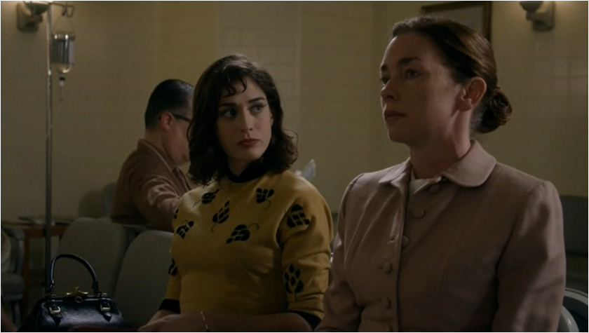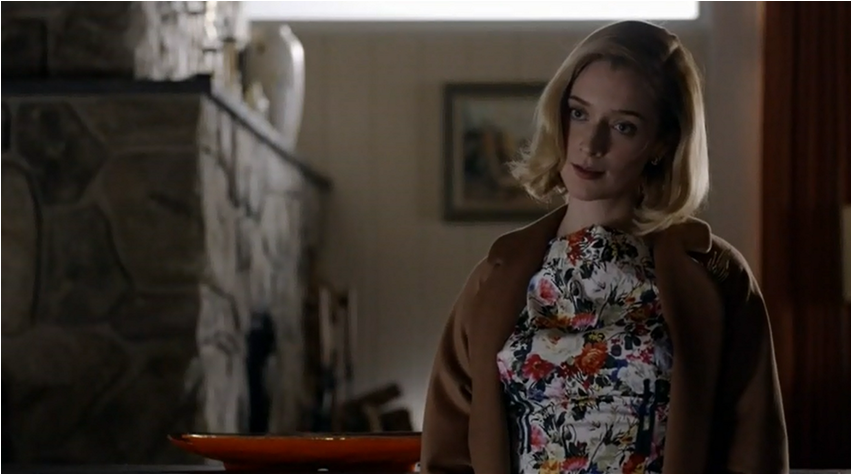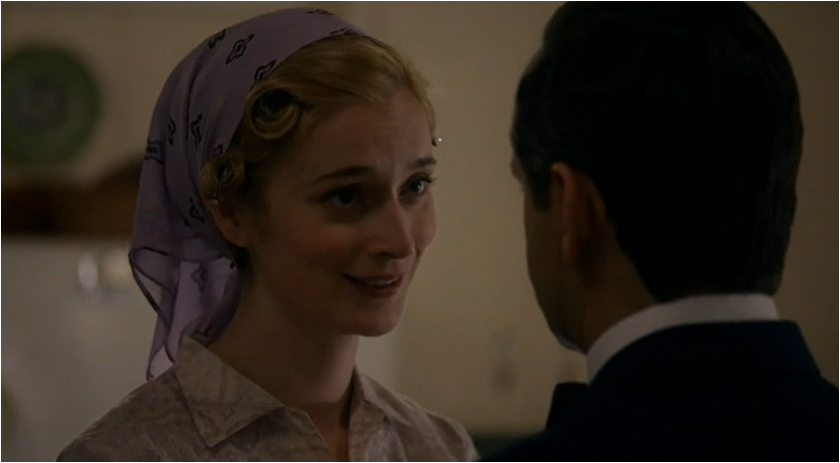 Circling back to Virginia (wearing an incredible sweater) and the notion of doing things alone after failures in her relationships with Lillian and Bill; both Bill and Lillian have let Virginia down and so much so that she tells her kids that “Everything that is worth doing you have to do on your own.” It’s a pretty pessimistic lesson and it looks like Virginia just bought a bigger padlock for the box that is housing her heart. Virginia receives some unsolicited advice from her Cal-O-Metric boss after Virginia has emphatically stated “I already have a career” and she is told in a rather sarcastic tone “maybe you’re special” when it comes to her dreams. This is enough to put a dampener on everything and coupled with her actual dream that opens “Dirty Jobs” Virginia ends the episode is a less optimistic place. By selling the diet pills to women she’s also spreading some of this misery by targeting people she met a year ago on the street outside their homes and even if she isn’t sticking to the script she’s still making people feel bad about how they look.