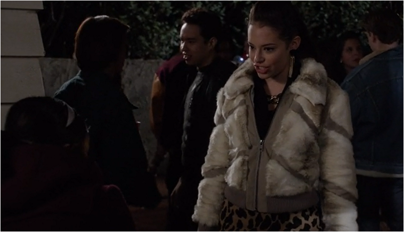 It’s a travesty that Donna LaDonna hasn’t appeared in the spotlight on these pages as she is pretty much The Carrie Diaries fashion MVP. Everything she wears is over the top, but this is the ’80s and we don’t need to see a refrained mean girl. Donna is more than just the cliché queen bee and she instantly makes any scene better. On last Friday’s episode she gave Dorrit some bad advice and yet she more than made up for it by challenging Mouse to beer pong, followed by some drunken spooning. These two characters are my everything (actually I might need to add Walt and Bennett to this list). Donna’s party outfit is made up of a Topshop faux-fur bomber jacket and leopard print dress because of course. Don’t ever change Donna and don’t leave me show.